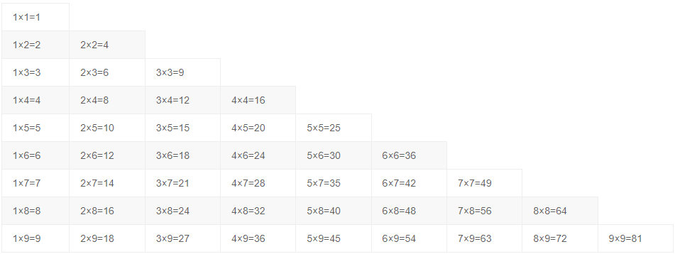 乘法口诀表